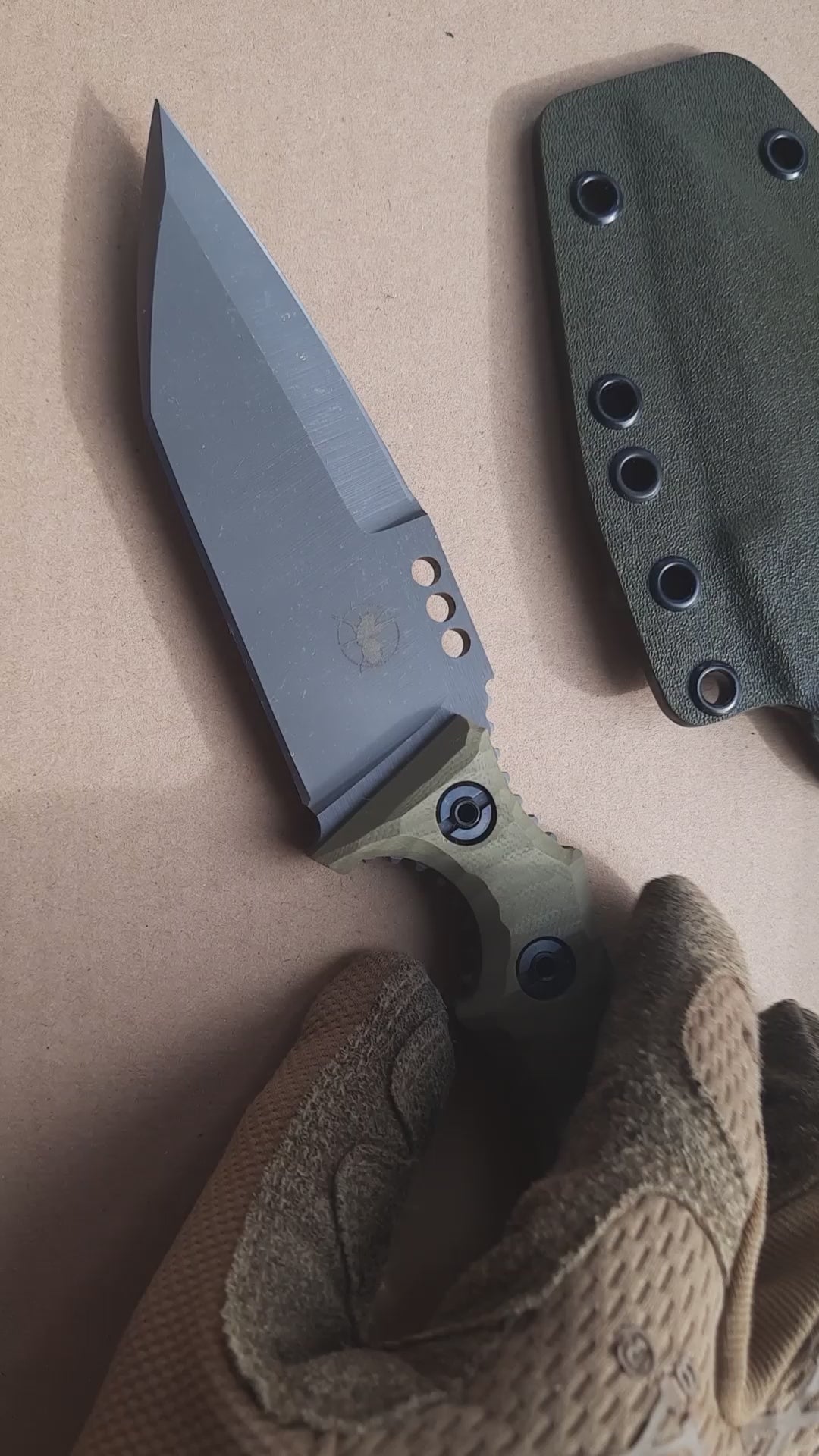 Das Messer ist mit einer Kydexscheide ausgestattet. Wählen Sie die Befestigung, wie Sie es tragen möchten!