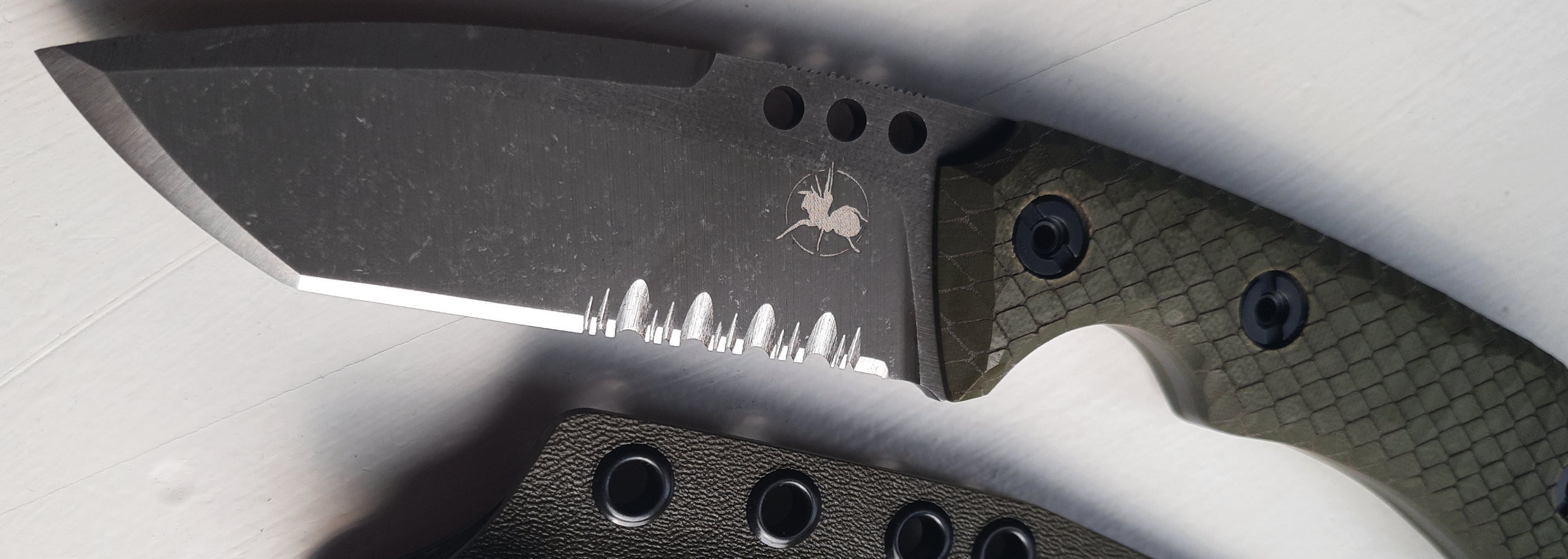 Atrax knives have specially designed screws with increased durability. Made of D2 steel, heat treated and hardened, they can withstand a pull of up to 2 tons. Screws designed not to unscrew themselves thanks to a very fine thread inside the sleeve. They are coated with black oxide to provide greater corrosion resistance.