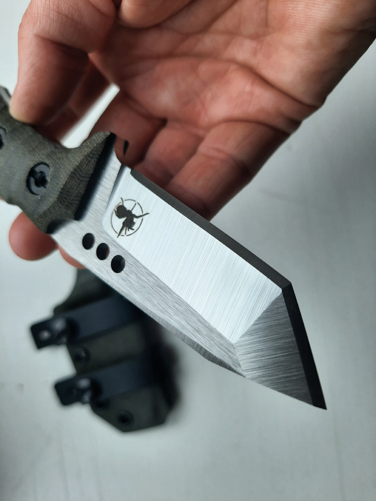 We recommend choosing an appropriate Kydex sheath to safely carry the knife. Decide what style and color of the vagina suits you in the next part of personalization.
