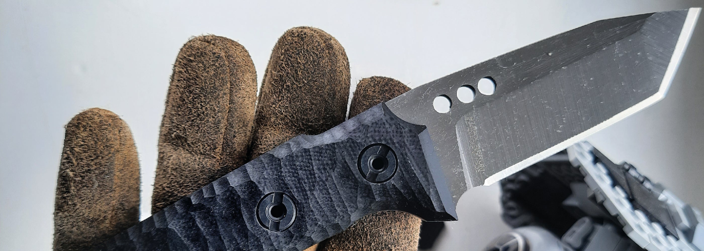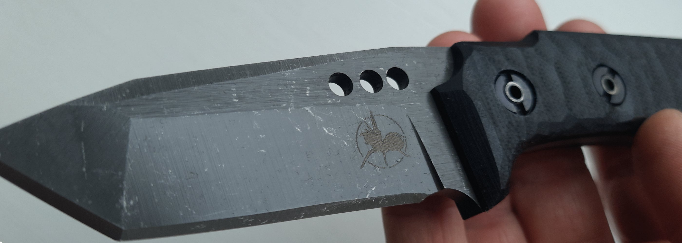Atrax knives have specially designed screws with increased durability. Made of D2 steel, heat treated and hardened, they can withstand a pull of up to 2 tons. Screws designed not to unscrew themselves thanks to a very fine thread inside the sleeve. They are coated with black oxide to provide greater corrosion resistance.