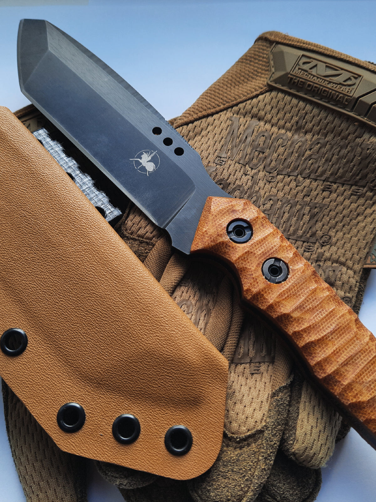 We recommend choosing an appropriate Kydex sheath to safely carry the knife. Decide what style and color of the vagina suits you in the next part of personalization.