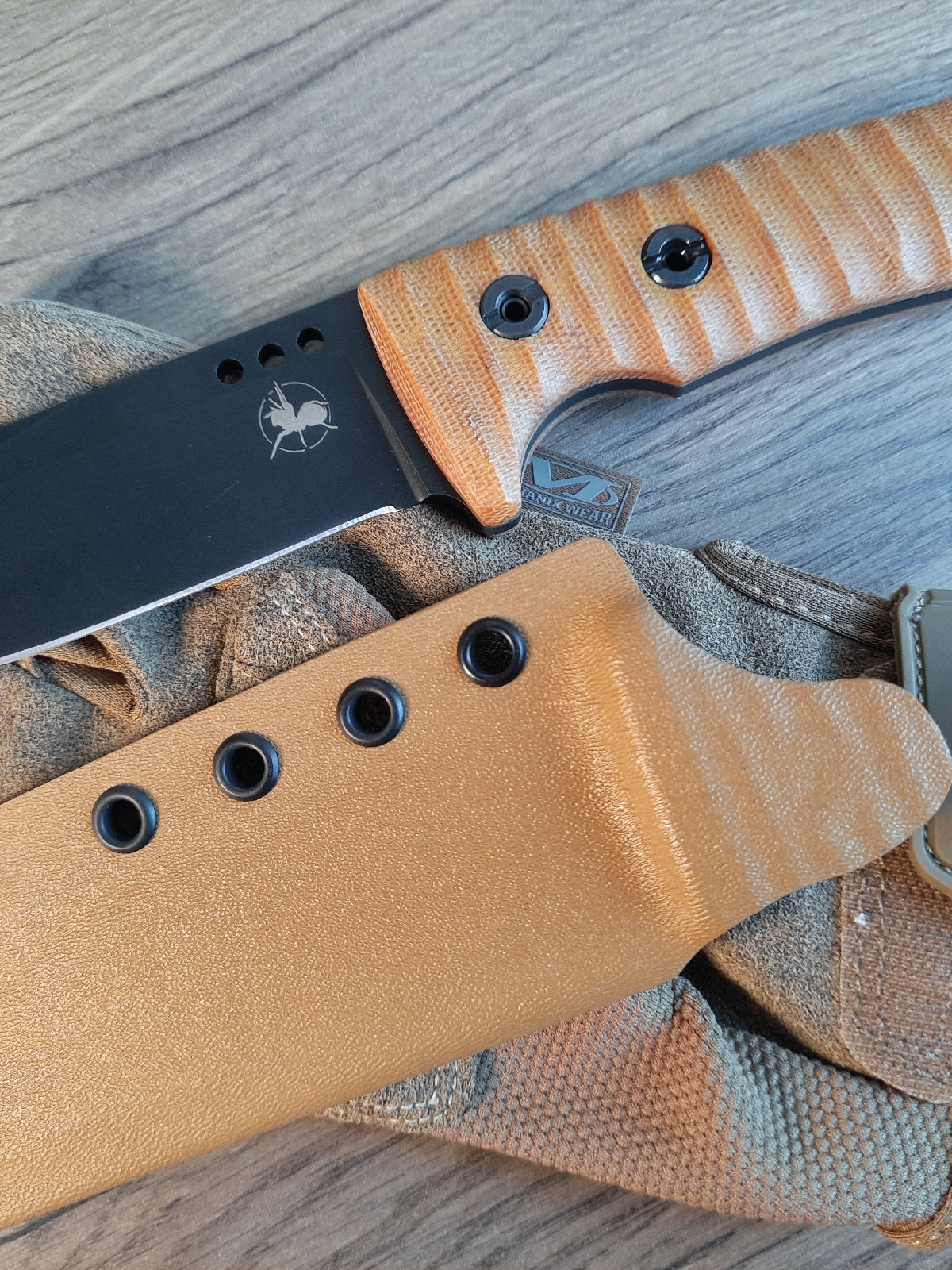 We recommend choosing an appropriate Kydex sheath to safely carry the knife. Decide what style and color of the vagina suits you in the next part of personalization.