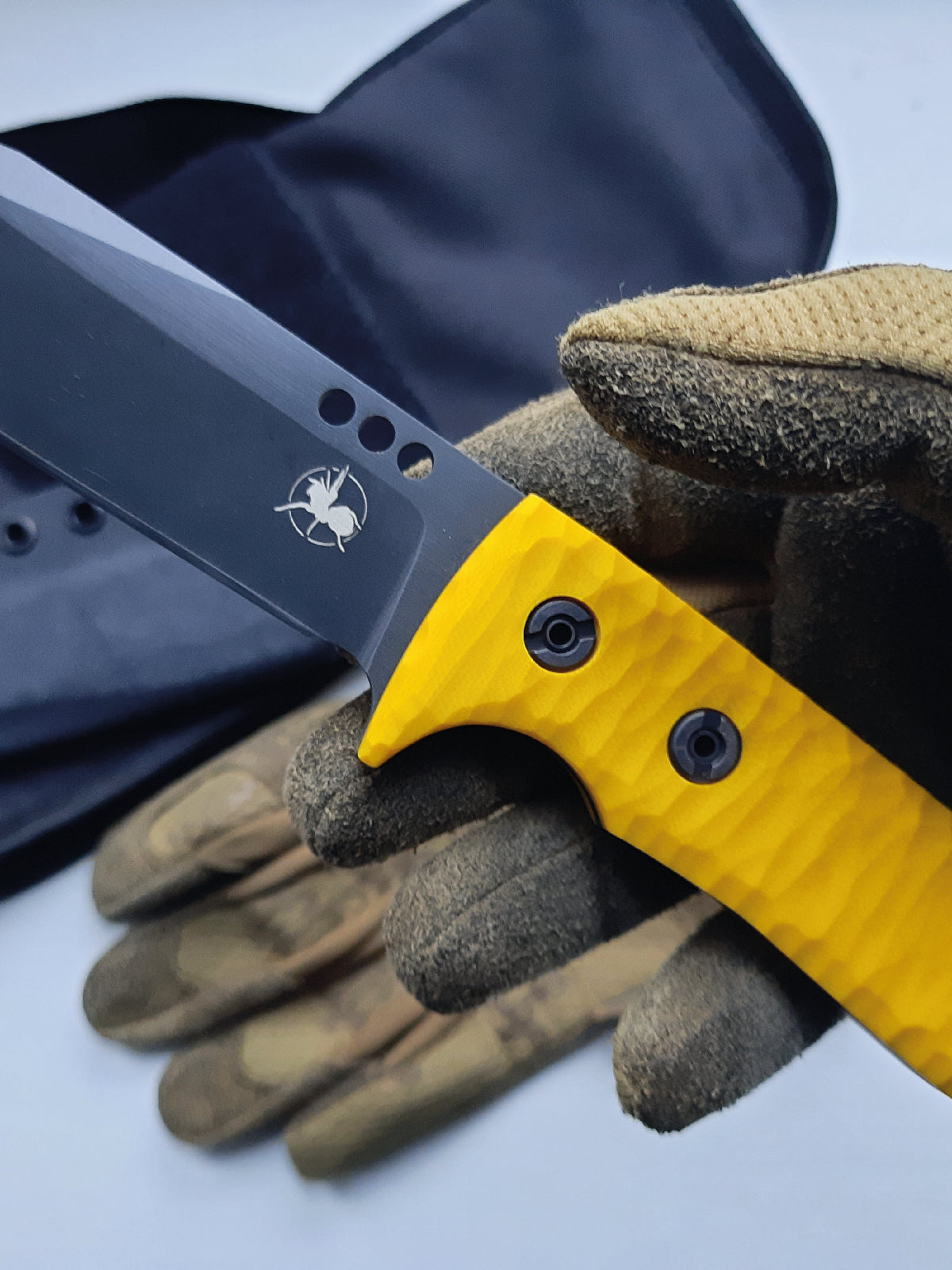 Atrax Wasp is a military-style Full Tang survival knife designed to be worn on a belt or backpack. The knife is designed to be as universal as possible in all bushcraft or survival conditions. To make Wasp knives, we use the best steels on the market, such as Elmax, D2, M390 and Becut. The type of steel is selected according to the desired finish of the coating, i.e. black oxide, cerakote, stonewashed or satin. Everything to obtain the best possible quality and durability.
