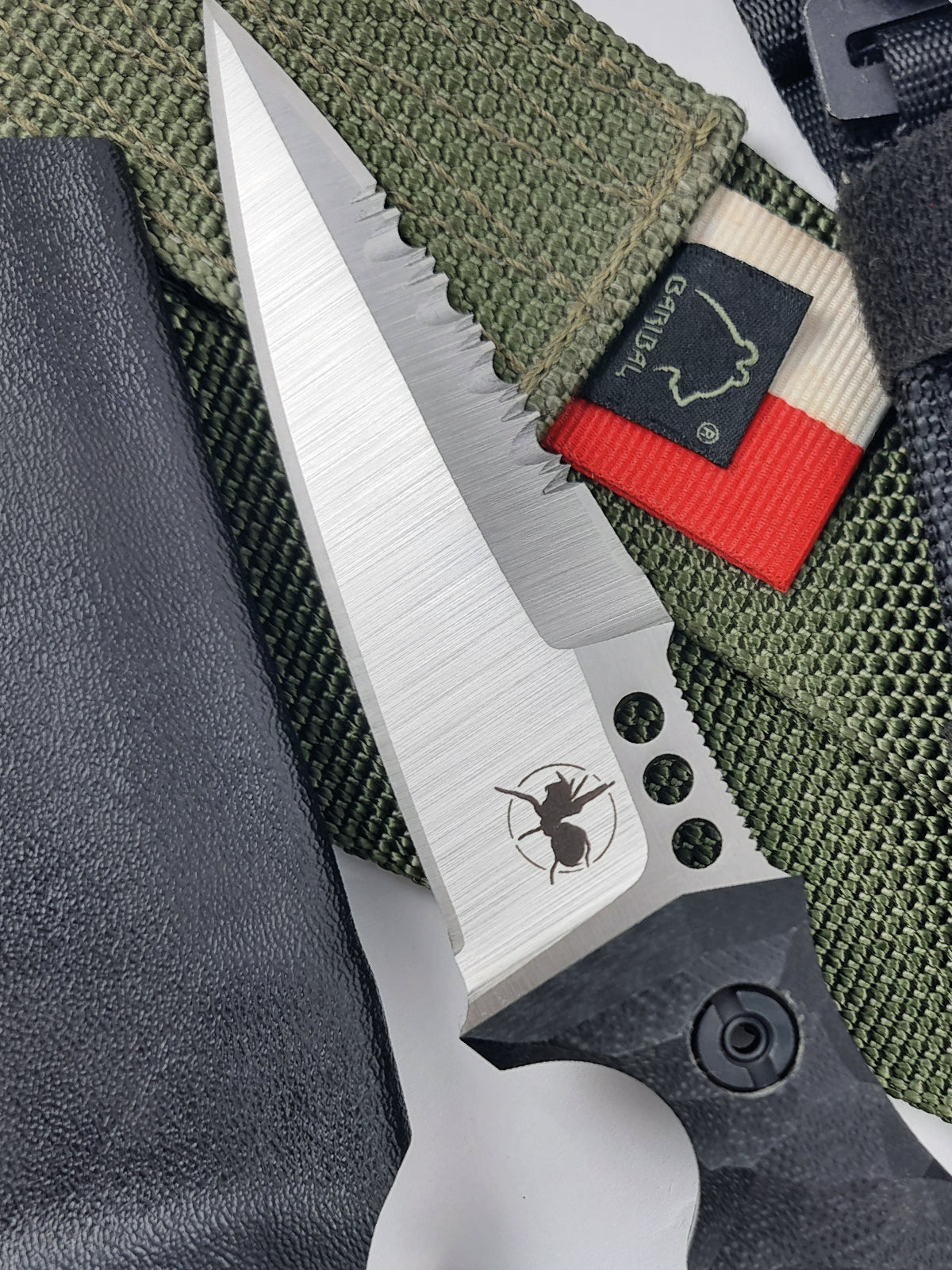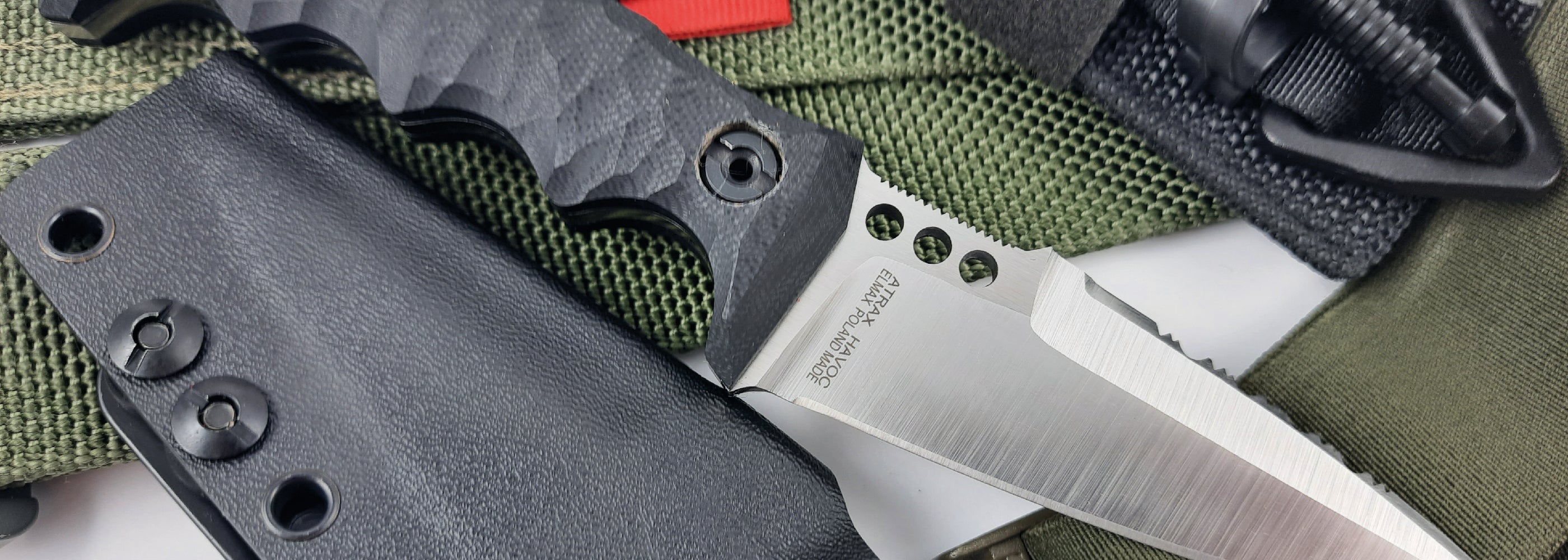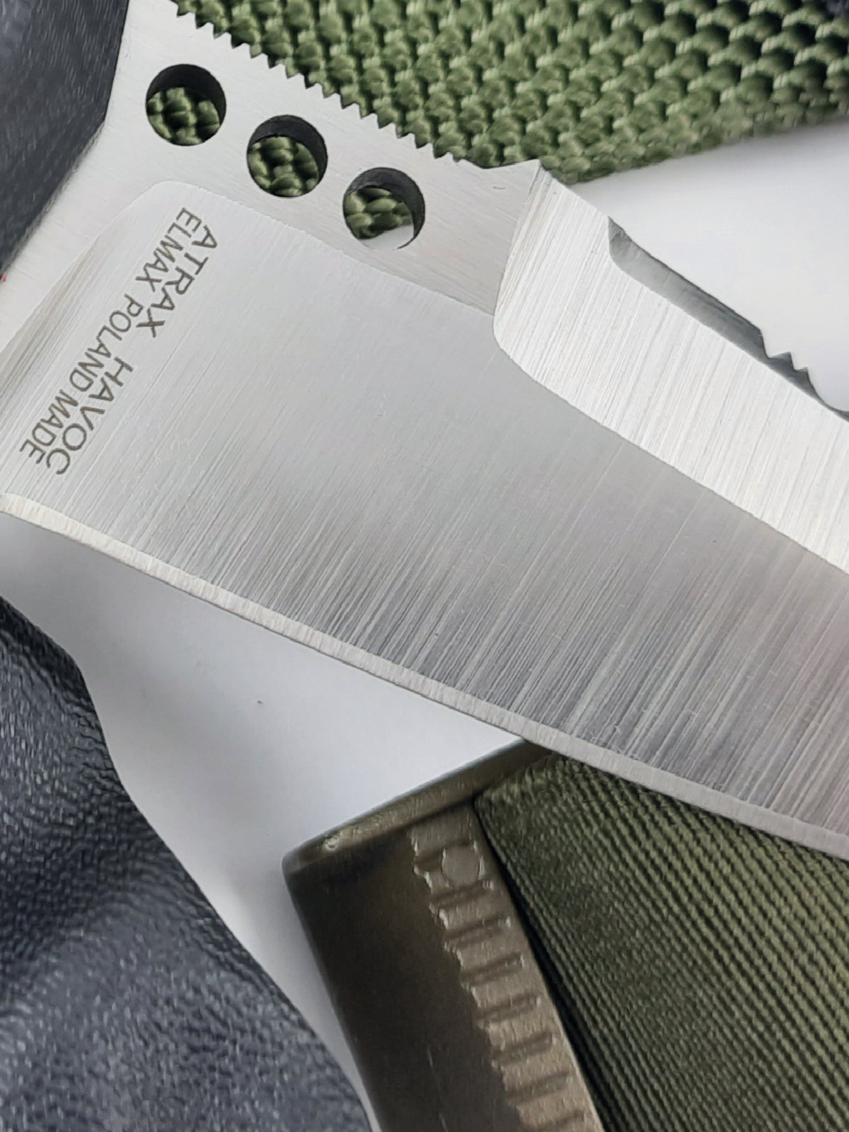 Atrax Havoc Ring and Havoc to taktyczny nóż full tang o charakterze wojskowym, przeznaczony do noszenia na pasie bojowym lub kamizelce plate carrier. Seria Tactical została stworzona, aby umożliwić noszenie noży w sposób otwarty lub ukryty. Nóż przeznaczony dla jednostek specjalnych wykonujących zadania wysokiego ryzyka. Używamy najlepszych stali na rynku, takich jak Elmax, D2, M390 i Becut. Rodzaj stali dobieramy w zależności od pożądanego wykończenia powłoki, tj. oksydowanej na czarno, cerakote, stonewashed lub satynowej. Wszystko po to, aby uzyskać jak najlepszą jakość i trwałość.
