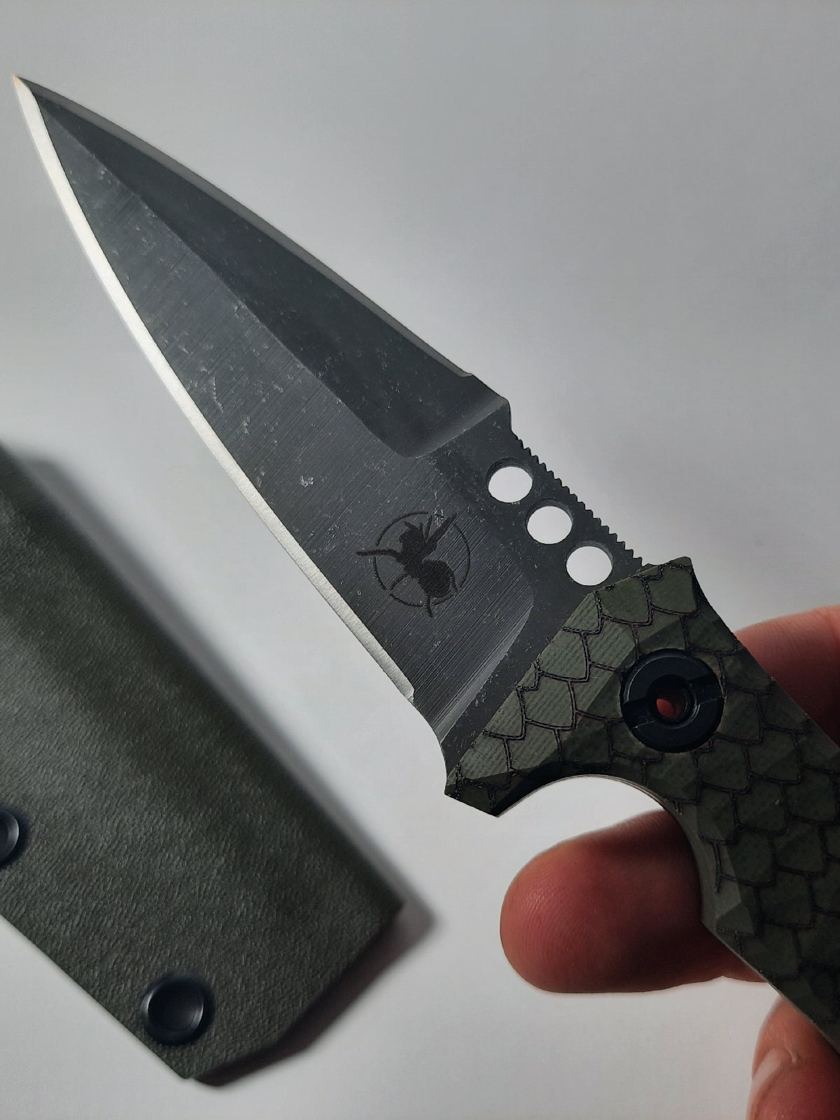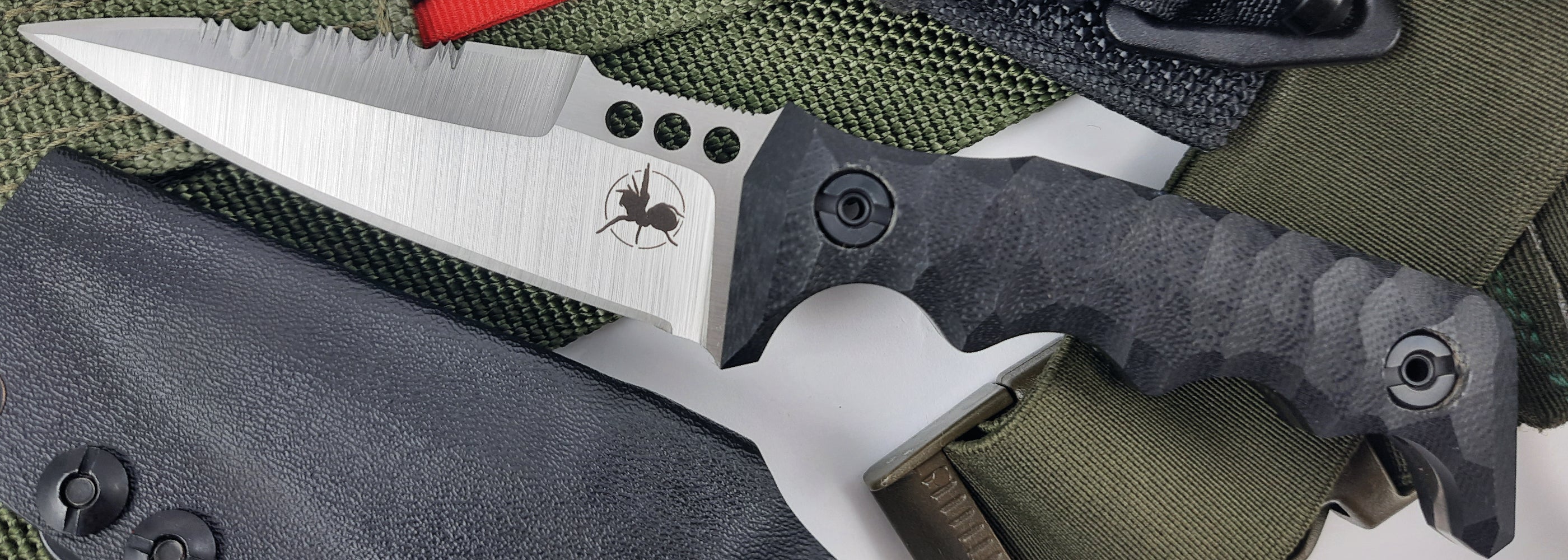 Noże Atrax są wyjątkowe, ponieważ wszystkie cięcia stali i uchwyty są wykonywane ręcznie. Dzięki temu każdy nóż jest wyjątkowy i jedyny w swoim rodzaju.